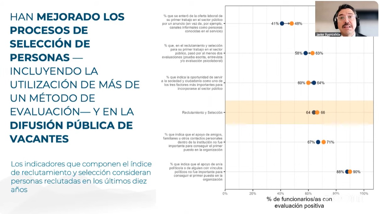 Los primeros resultados del estudio fueron entregados en un webinar, en el que participaron el director nacional del Servicio Civil, Pedro Guerra; la especialista líder en Gestión Pública del BID, Sandra Naranjo; el profesor de la Universidad de Oxford e investigador principal del estudio, Christian Schuster; el coinvestigador del mismo plantel, Javier Fuenzalida, y la coordinadora ejecutiva de la encuesta desde el BID, Magdalena Rojas.